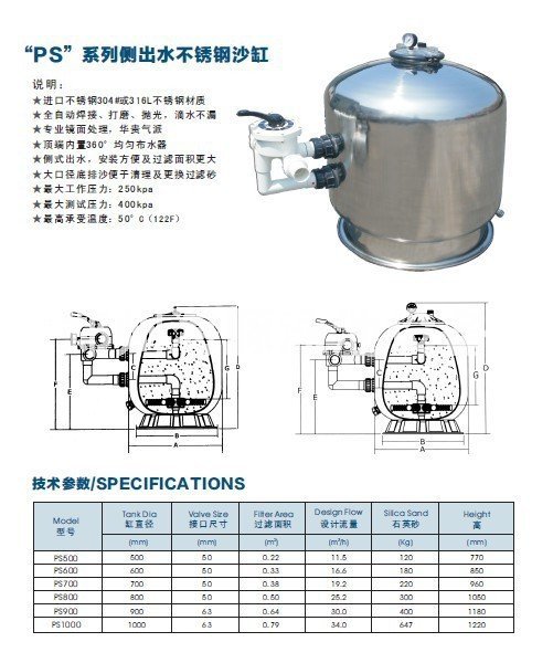 不銹鋼頂出式過濾砂缸優(yōu)點: