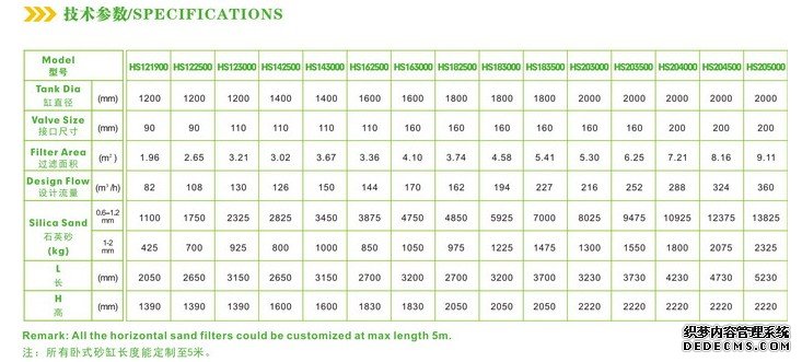 較高承受溫度:50℃(122F)直徑2000mm的濾床高度: 1m